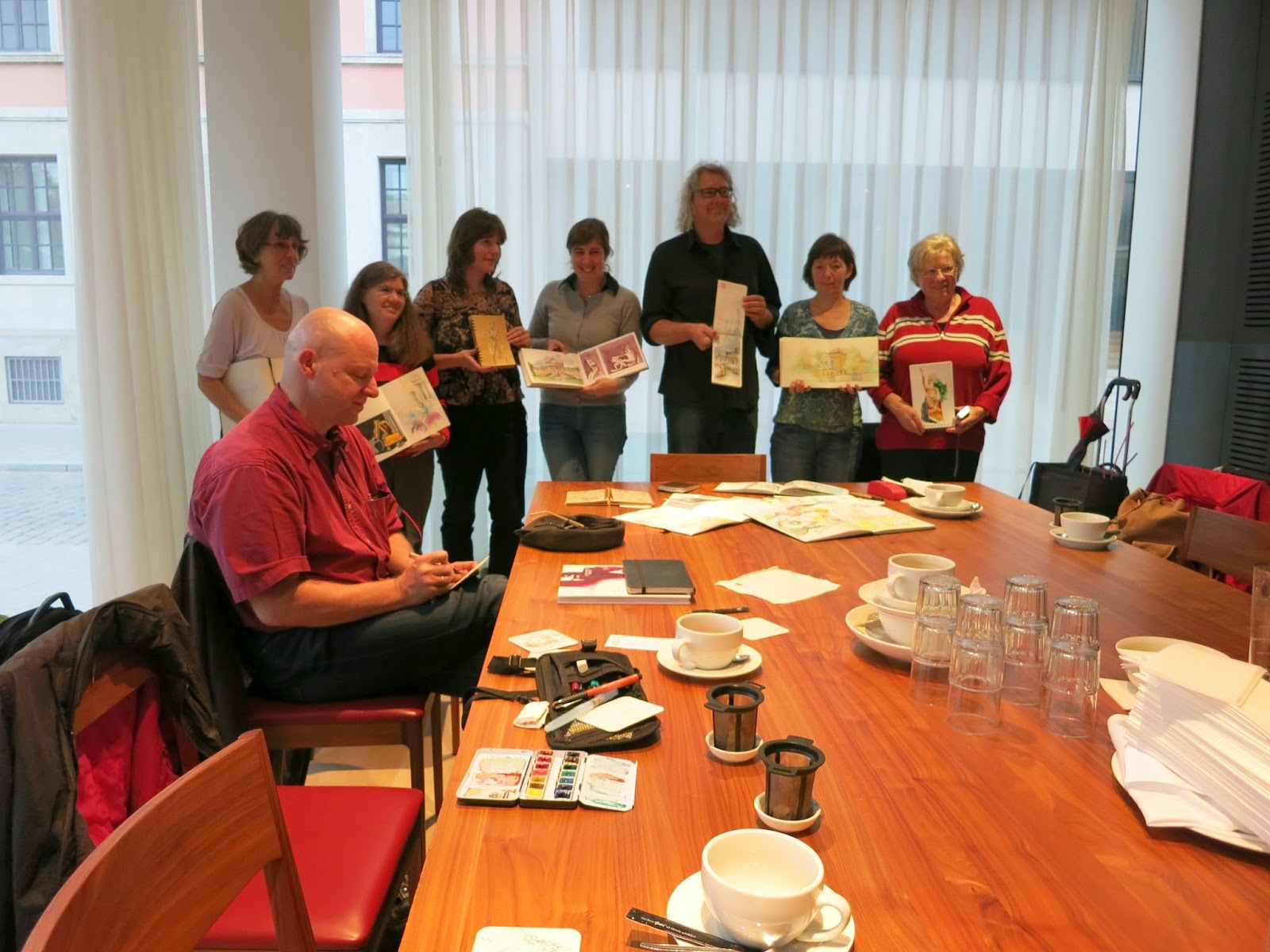 | Glyptothek, Statue Silen und Dionysos weißer Gelstift, Fineliner und verdünnte Tusche in Kraft Skizzenblock |